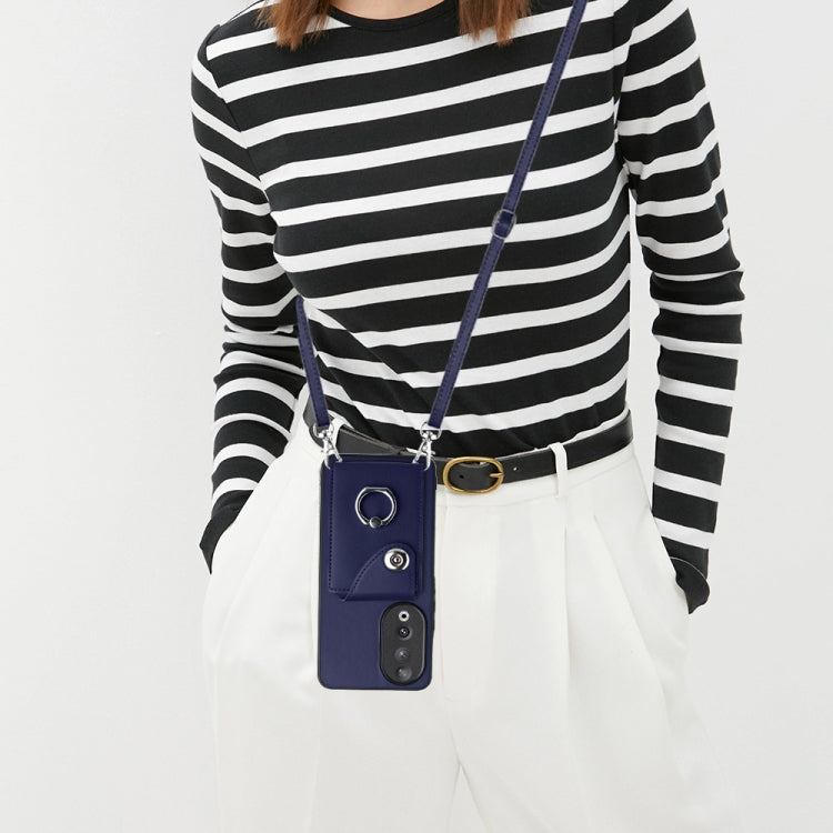 For Honor 90 Organ Card Bag Ring Holder Phone Case with Long Lanyard(Blue)