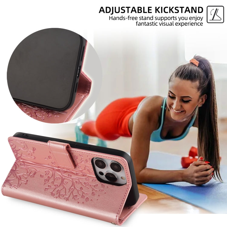 For Honor 9X Tree & Deer Embossed Leather Phone Case(Rose Gold)