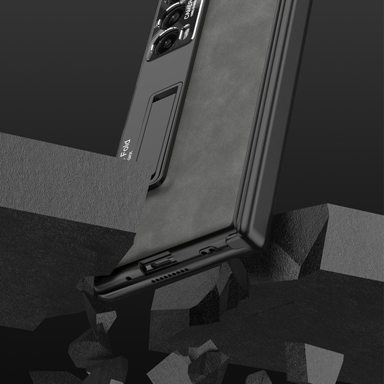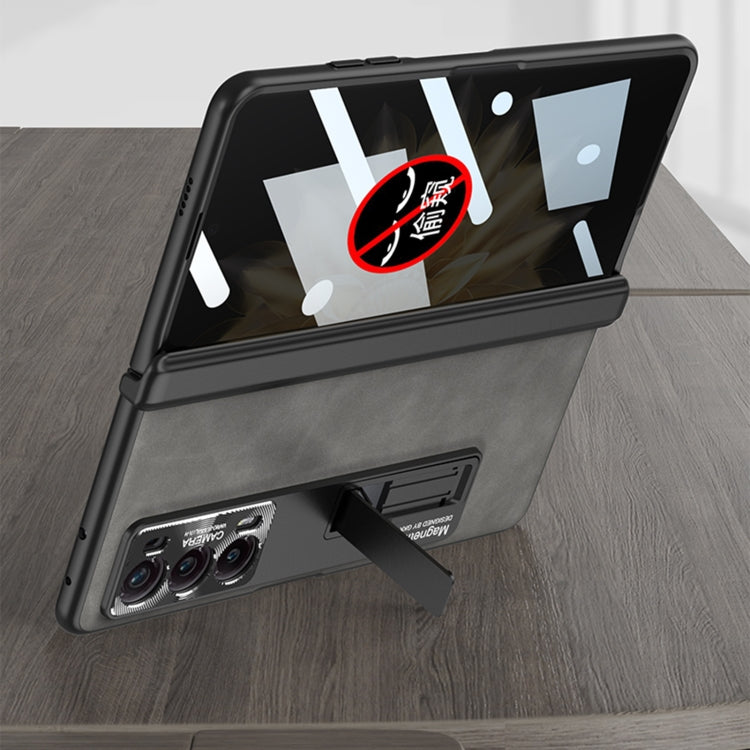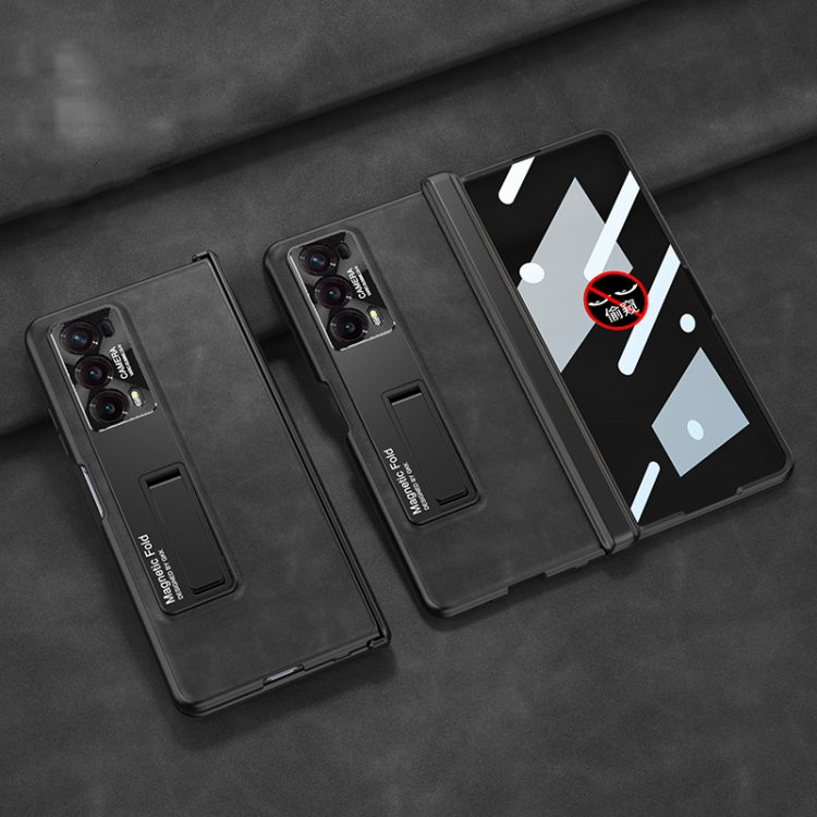 For Honor Magic V2 GKK Integrated Frosted Fold Hinge Privacy Leather Phone Case with Holder(Black)