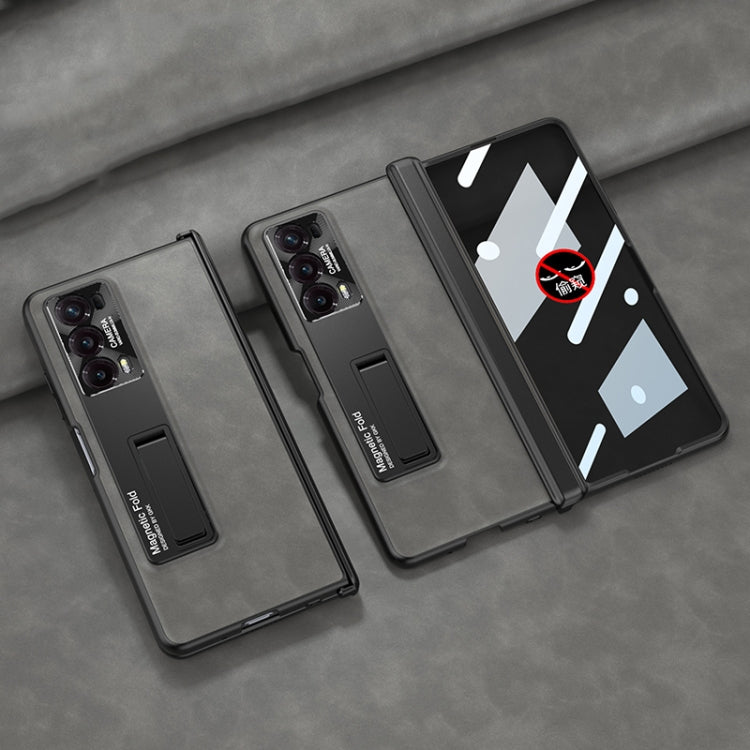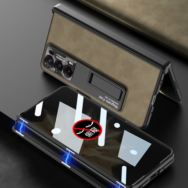 For Honor Magic V2 GKK Integrated Frosted Fold Hinge Privacy Leather Phone Case with Holder(Grey)