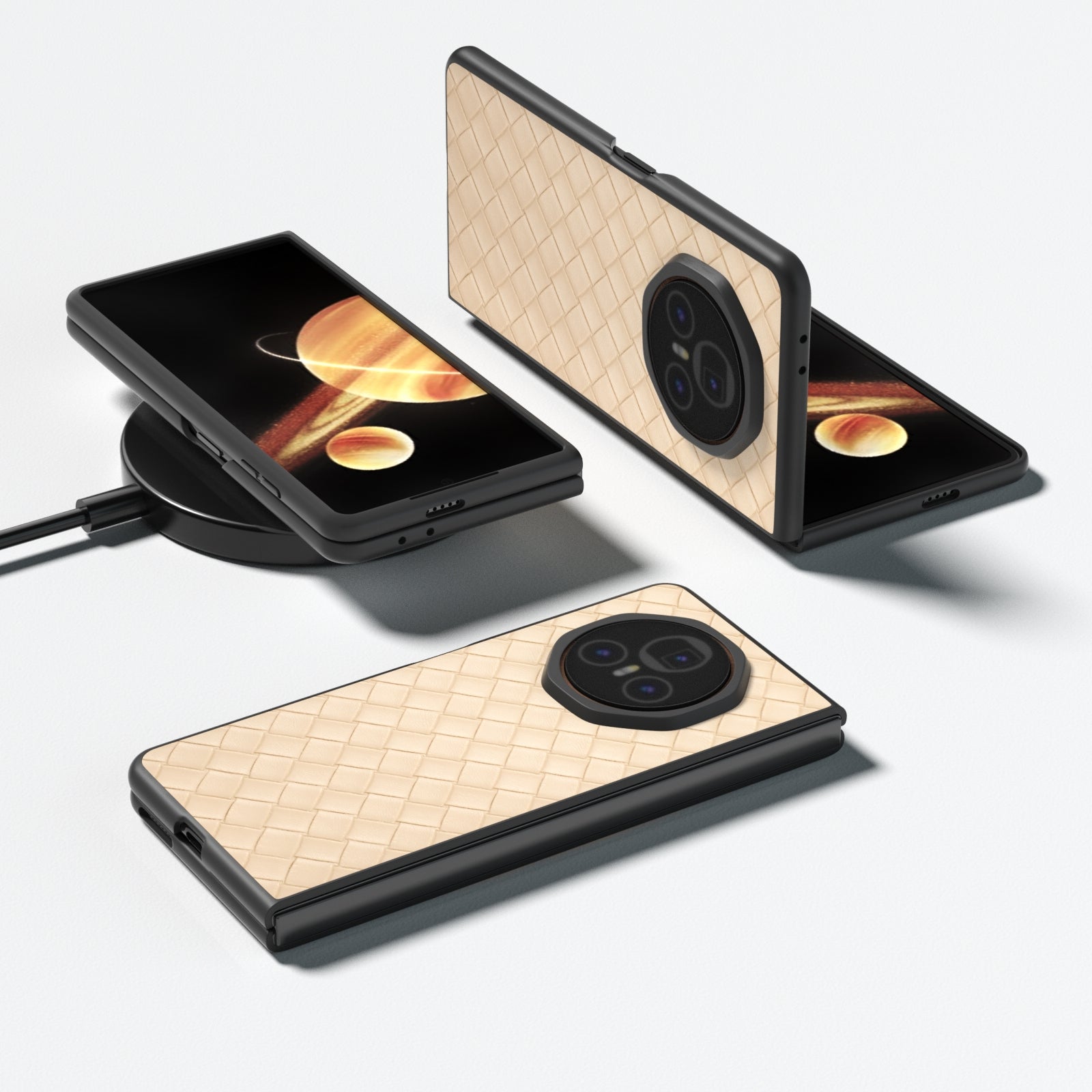 For Honor Magic V3 Black Frame Woven Texture PU Phone Case(Beige)