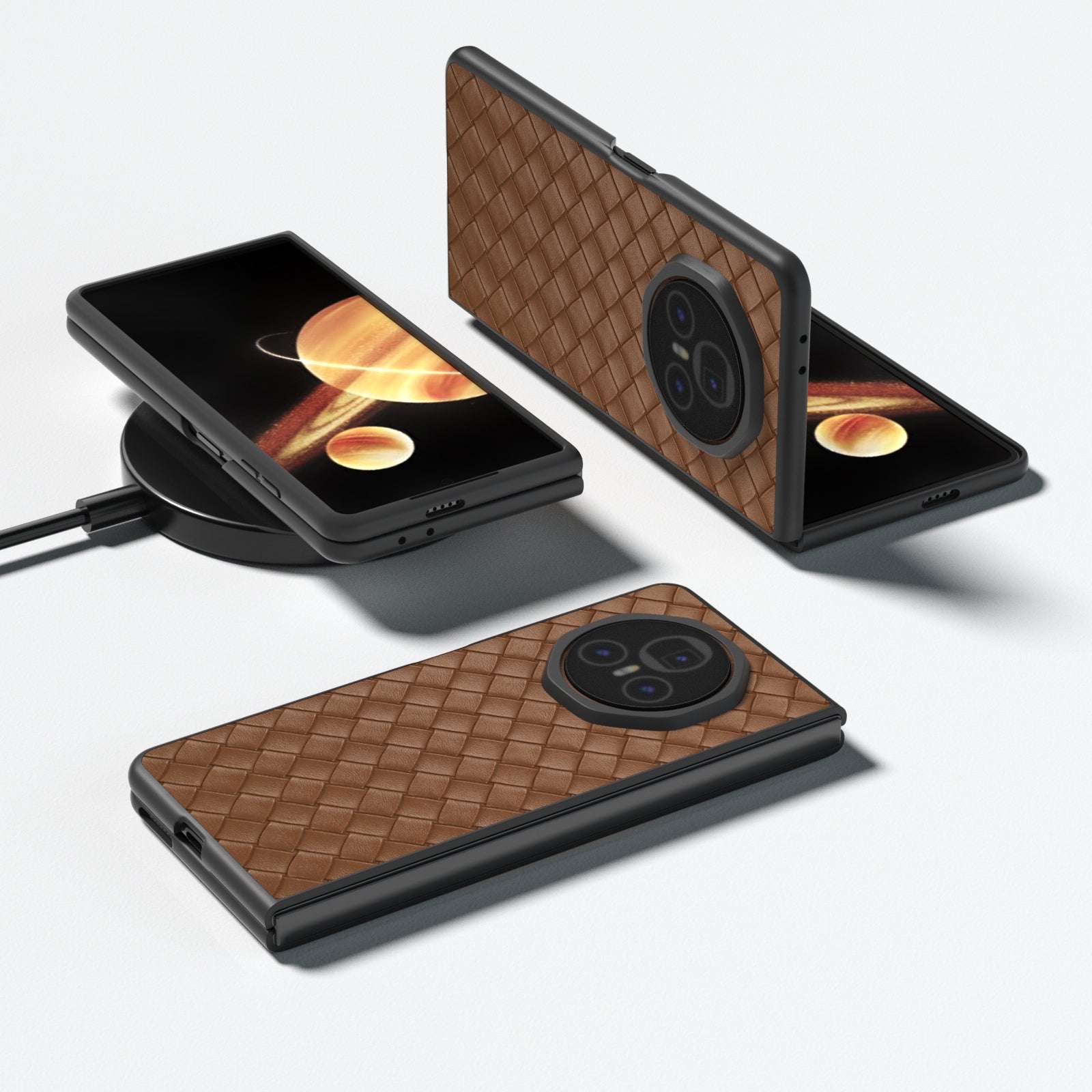 For Honor Magic V3 Black Frame Woven Texture PU Phone Case(Brown)