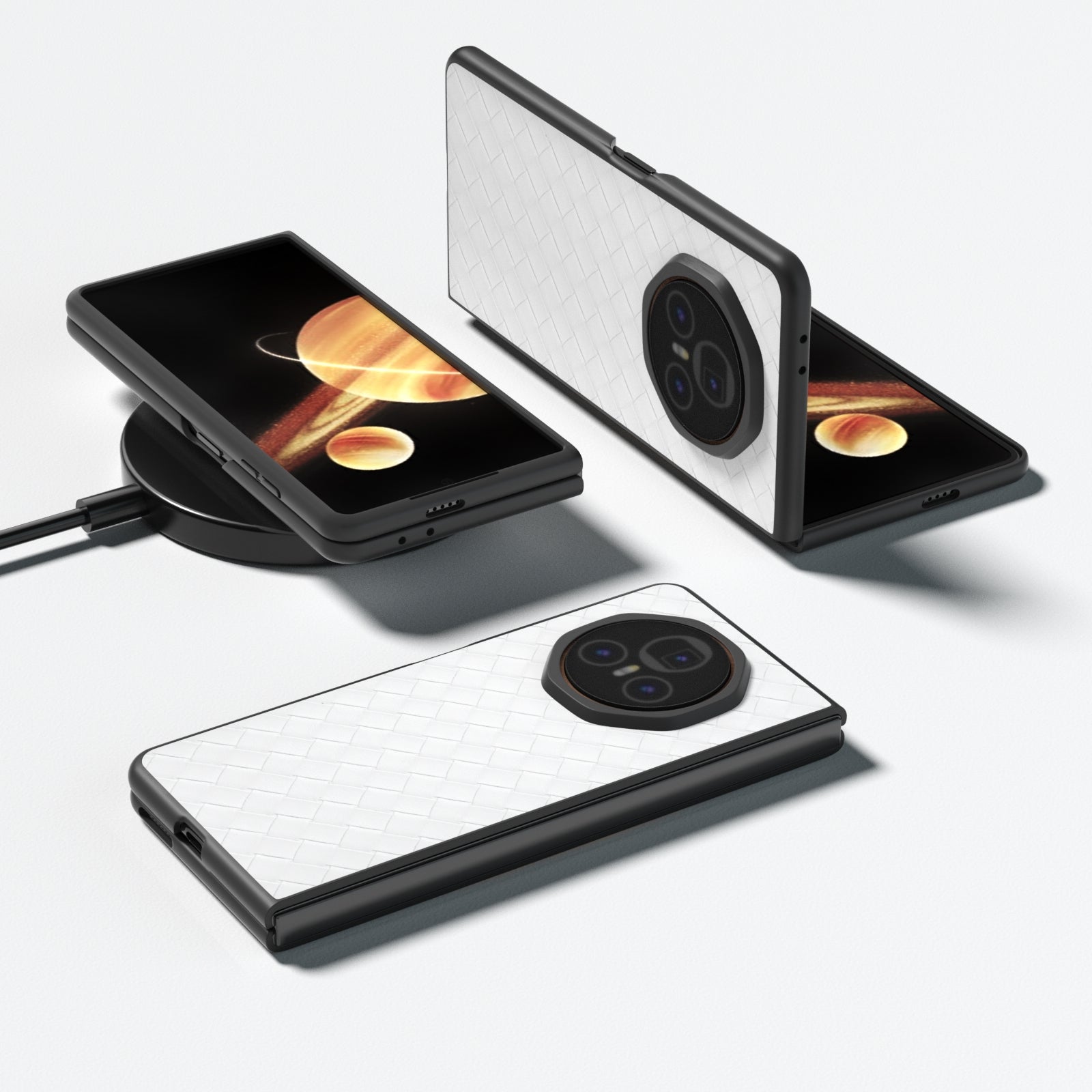 For Honor Magic V3 Black Frame Woven Texture PU Phone Case(White)