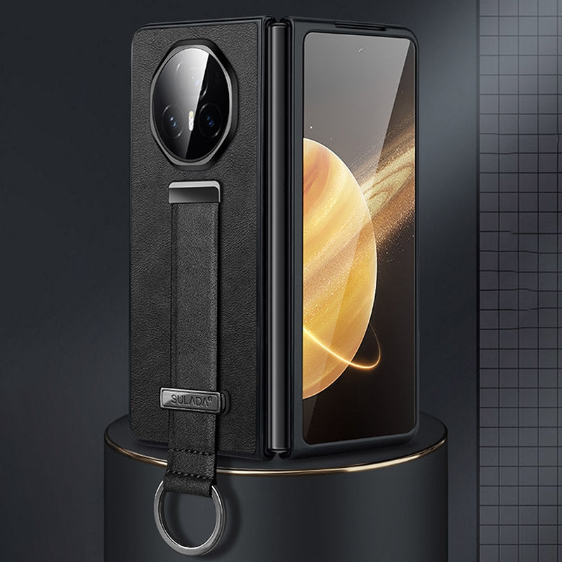 For Honor Magic V3 SULADA PC + Leather Texture Skin Feel Shockproof Phone Case(Black)