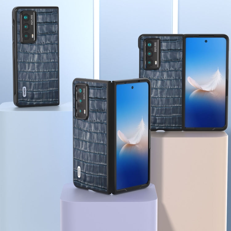 For Honor Magic Vs2 ABEEL Crocodile Texture Genuine Leather Phone Case(Blue)