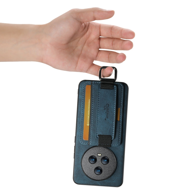 For Honor Magic4 Pro Suteni H13 Litchi Leather Wrist Strap Wallet Back Phone Case(Blue)