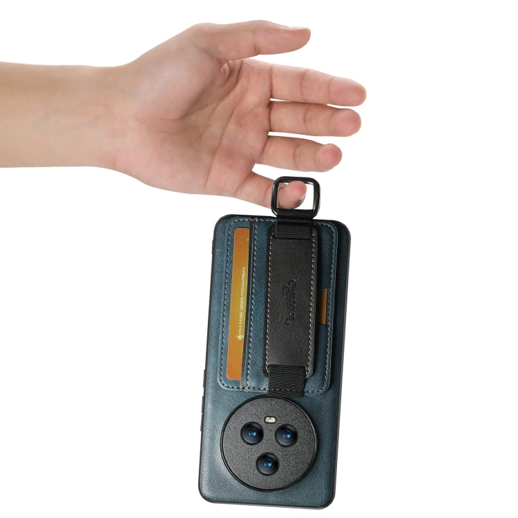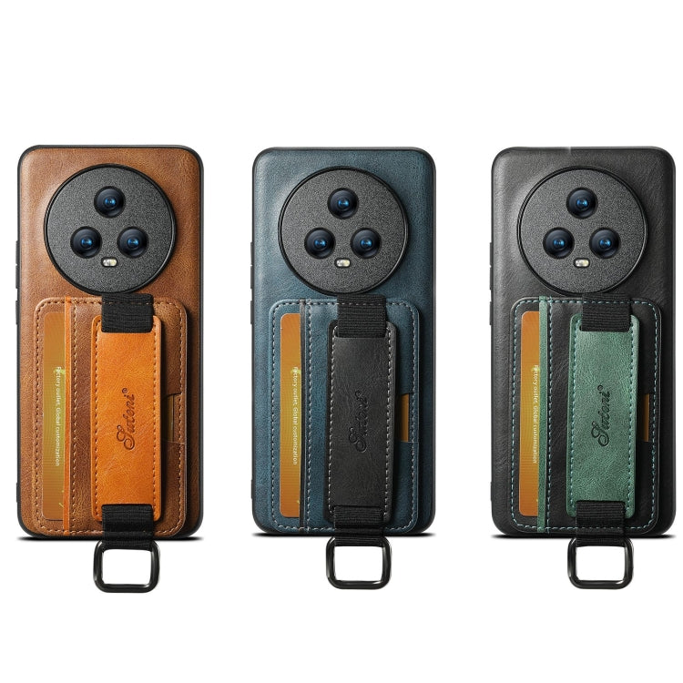 For Honor Magic4 Suteni H13 Card Wallet Wrist Strap Holder PU Phone Case(Blue)