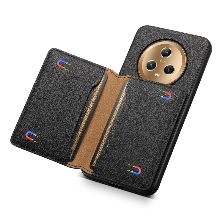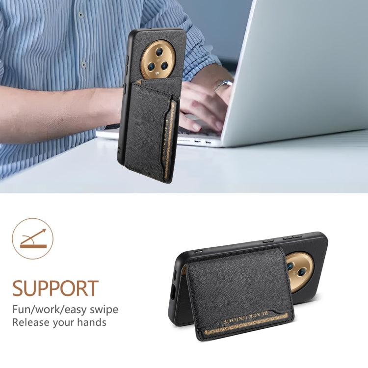 For Honor Magic5 Calf Texture Card Bag Design Full Coverage Phone Case(Black)