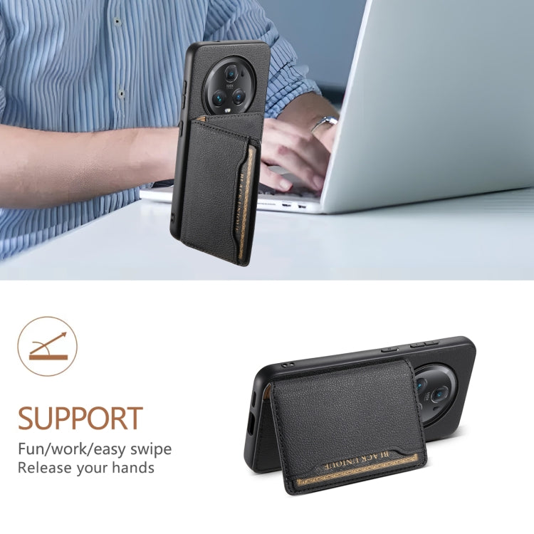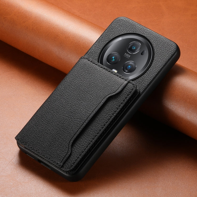 For Honor Magic5 Pro Calf Texture Card Bag Design Full Coverage Phone Case(Black)