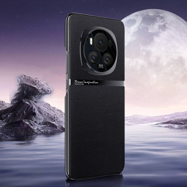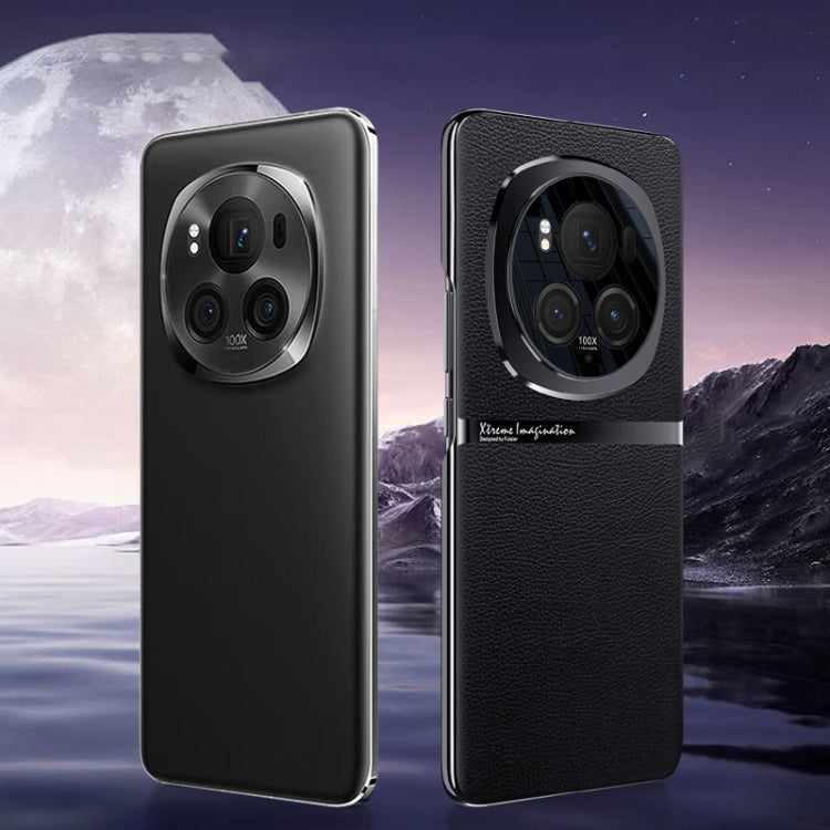 For Honor Magic6 Electroplating Plain-leather All-inclusive Shockproof Phone Case(Black)