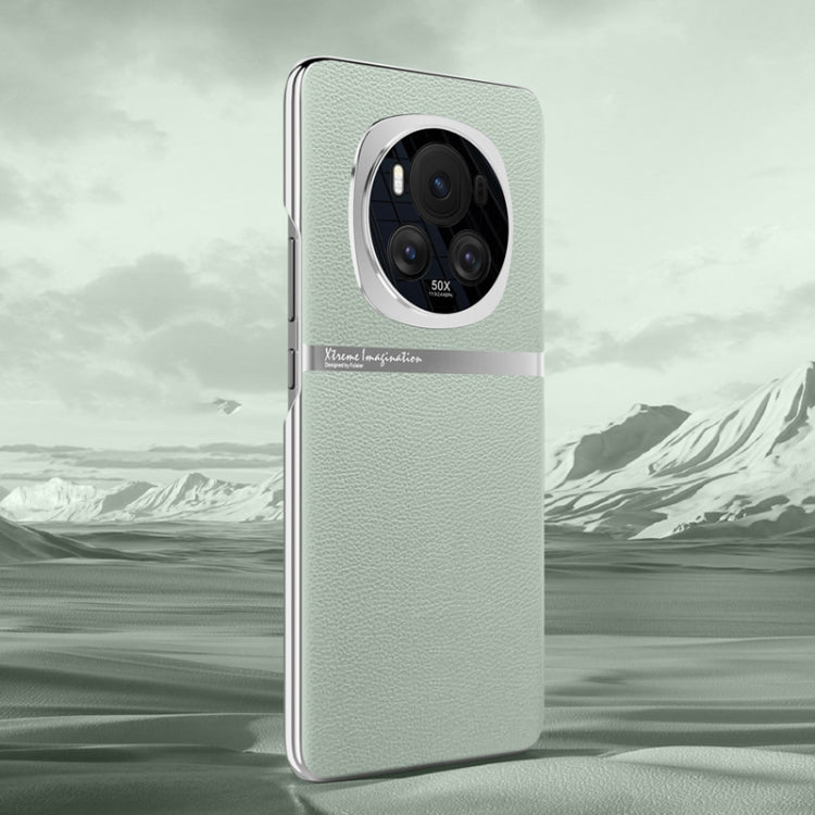 For Honor Magic6 Electroplating Plain-leather All-inclusive Shockproof Phone Case(Green)