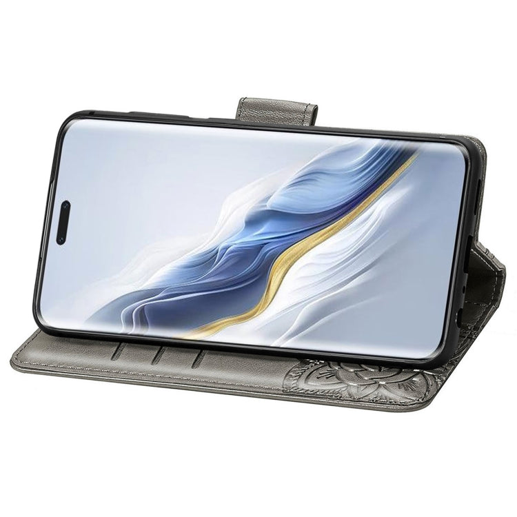 For Honor Magic6 Pro Butterfly Love Flower Embossed Leather Phone Case(Gray)