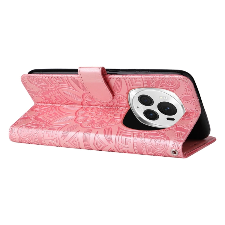 For Honor Magic6 Pro Embossed Sunflower Leather Phone Case(Rose Gold)