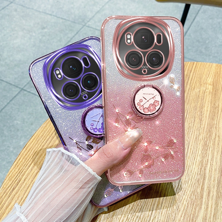 For Honor Magic6 Pro Gradient Glitter Immortal Flower Ring All-inclusive Phone Case(Blue)