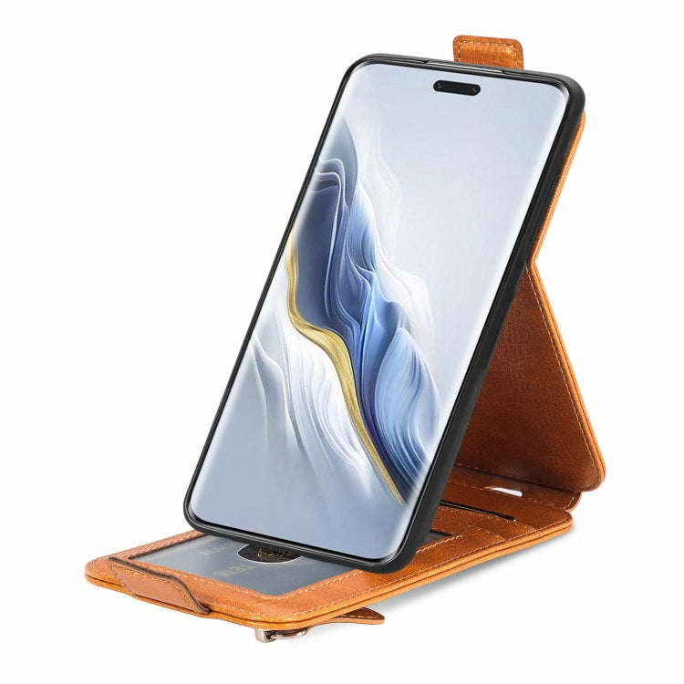 For Honor Magic6 Pro Zipper Wallet Vertical Flip Leather Phone Case(Brown)