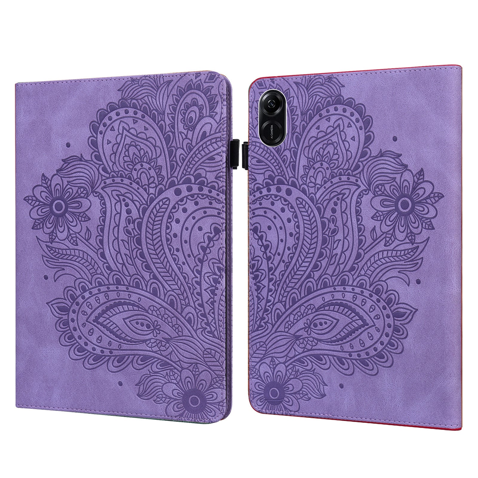 For Honor Pad X9 Case Flower Pattern PU Leather Folio Stand Tablet Cover with Card Slots - Purple