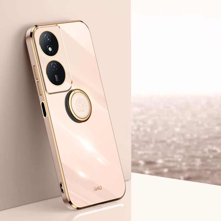 For Honor Play 50 Plus 5G XINLI Straight Edge 6D Electroplate TPU Phone Case with Ring Holder(Pink)