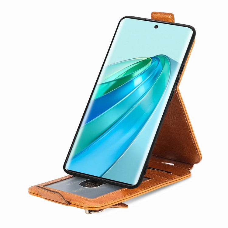 For Honor X40 5G Zipper Wallet Vertical Flip Leather Phone Case(Brown)