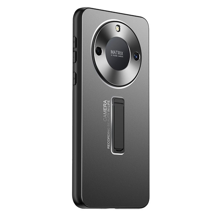 For Honor X40 Frosted Metal Hybrid TPU Holder Phone Case(Black)