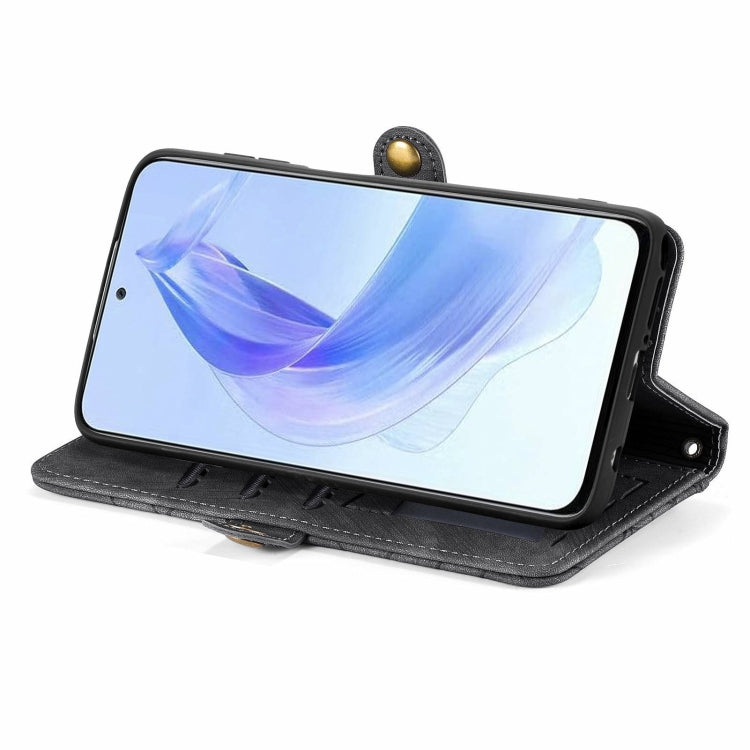 For Honor X50i Geometric Zipper Wallet Side Buckle Leather Phone Case(Black)