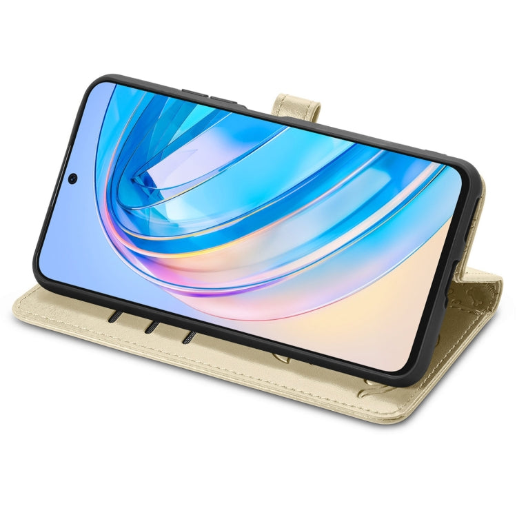 For Honor X6A Cat and Dog Embossed Leather Phone Case(Gold)
