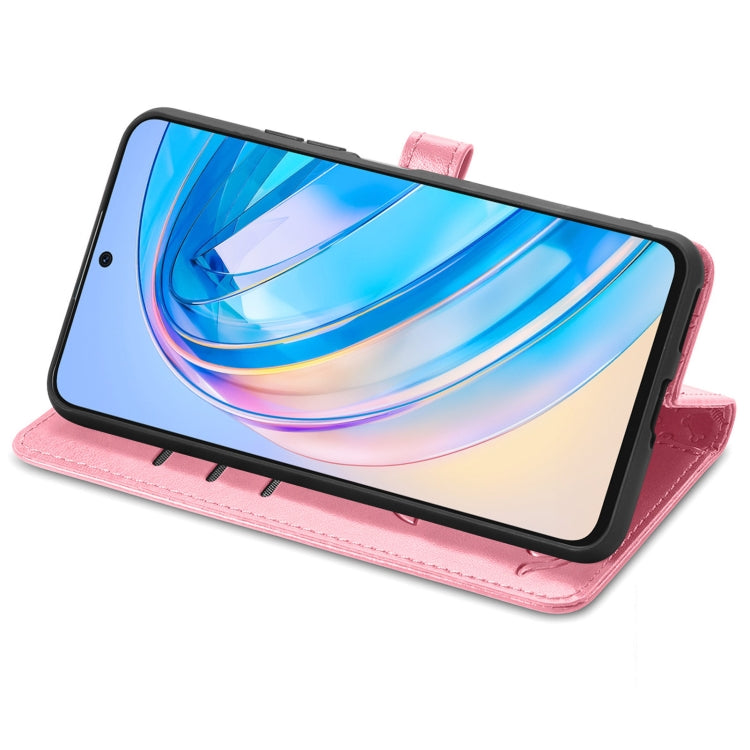For Honor X6A Cat and Dog Embossed Leather Phone Case(Pink)