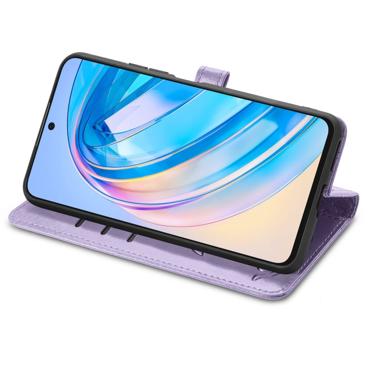 For Honor X6A Cat and Dog Embossed Leather Phone Case(Purple)