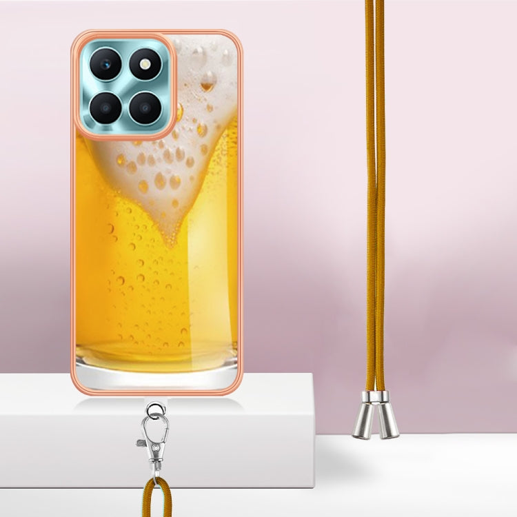 For Honor X6a Electroplating Dual-side IMD Phone Case with Lanyard(Draft Beer)