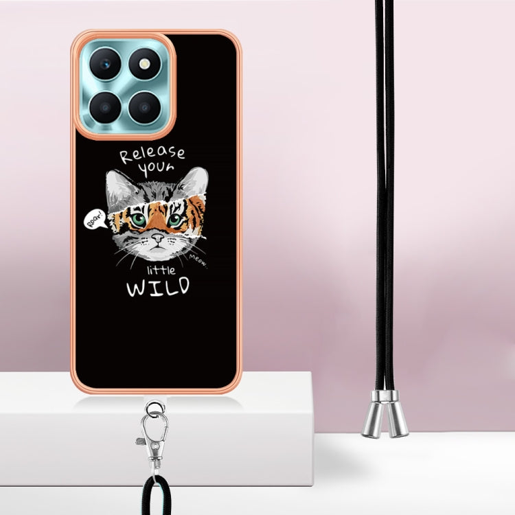 For Honor X6a Electroplating Dual-side IMD Phone Case with Lanyard(Natural Growth)