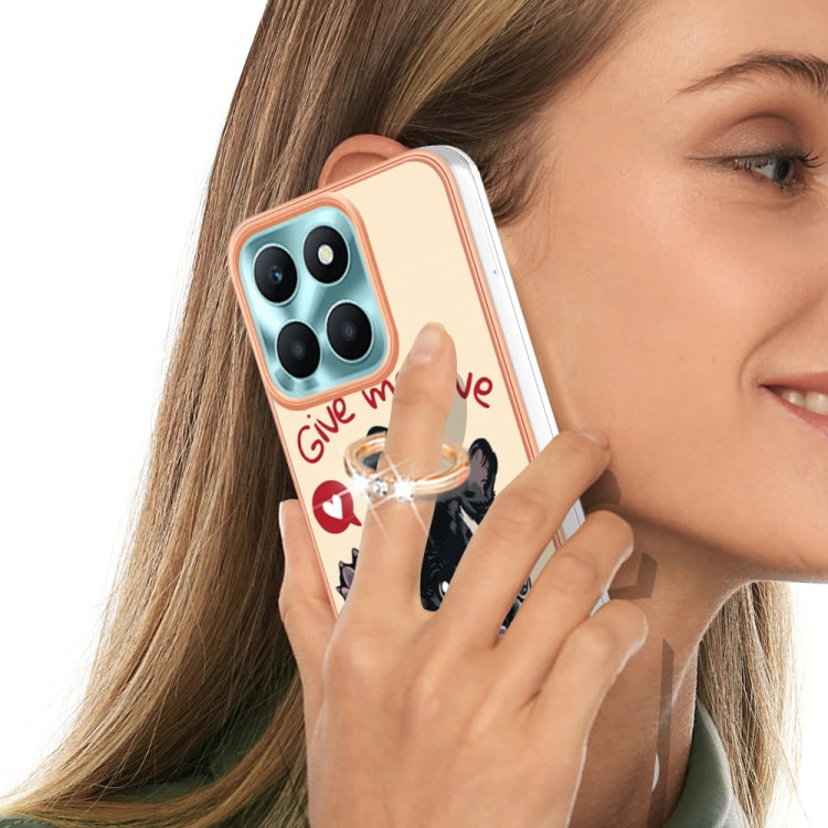 For Honor X6a Electroplating Dual-side IMD Phone Case with Ring Holder(Lucky Dog)