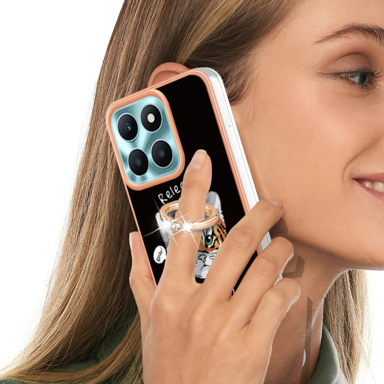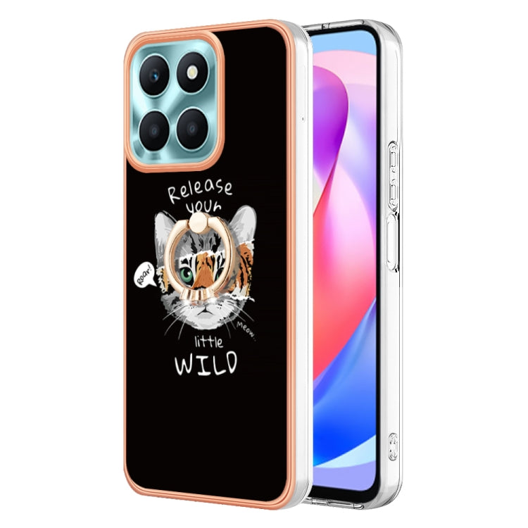 For Honor X6a Electroplating Dual-side IMD Phone Case with Ring Holder(Natural Growth)