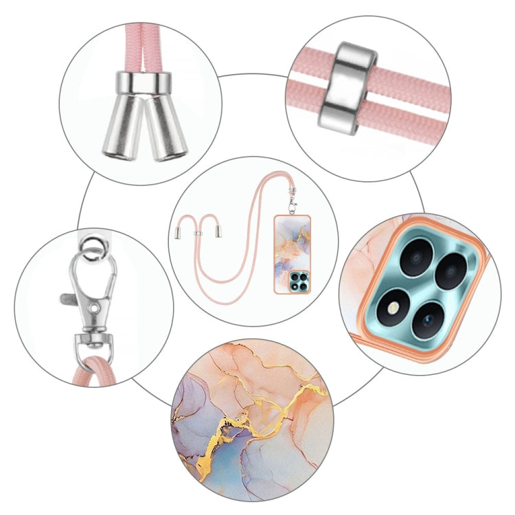 For Honor X6a Electroplating IMD TPU Phone Case with Lanyard(White Marble)