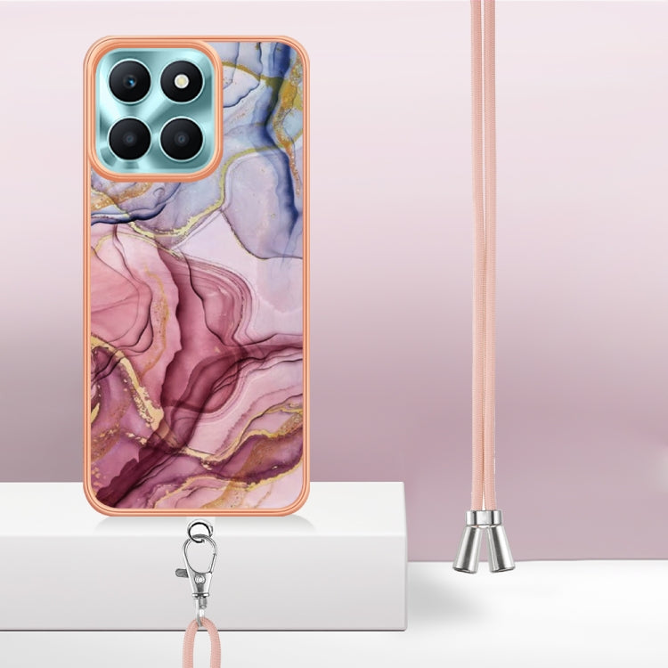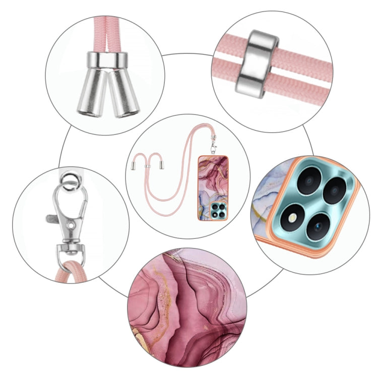 For Honor X6a Electroplating Marble Dual-side IMD Phone Case with Lanyard(Rose Red 014)