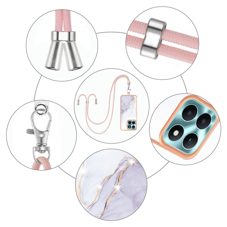 For Honor X6a Electroplating Marble Dual-side IMD Phone Case with Lanyard(White 006)