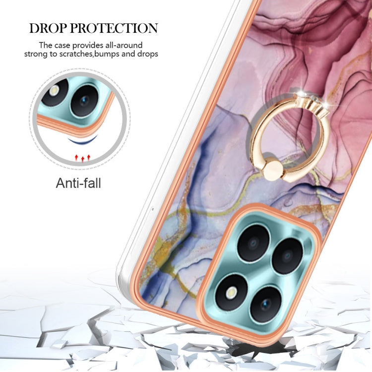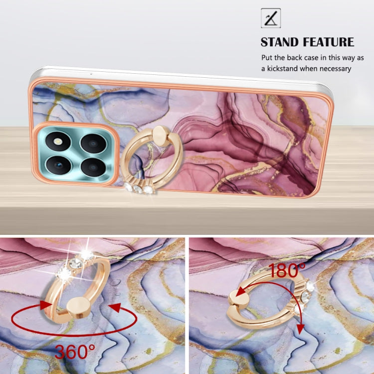 For Honor X6a Electroplating Marble Dual-side IMD Phone Case with Ring(Rose Red 014)