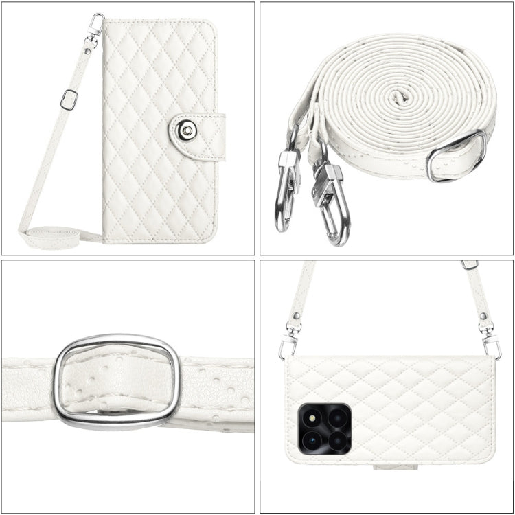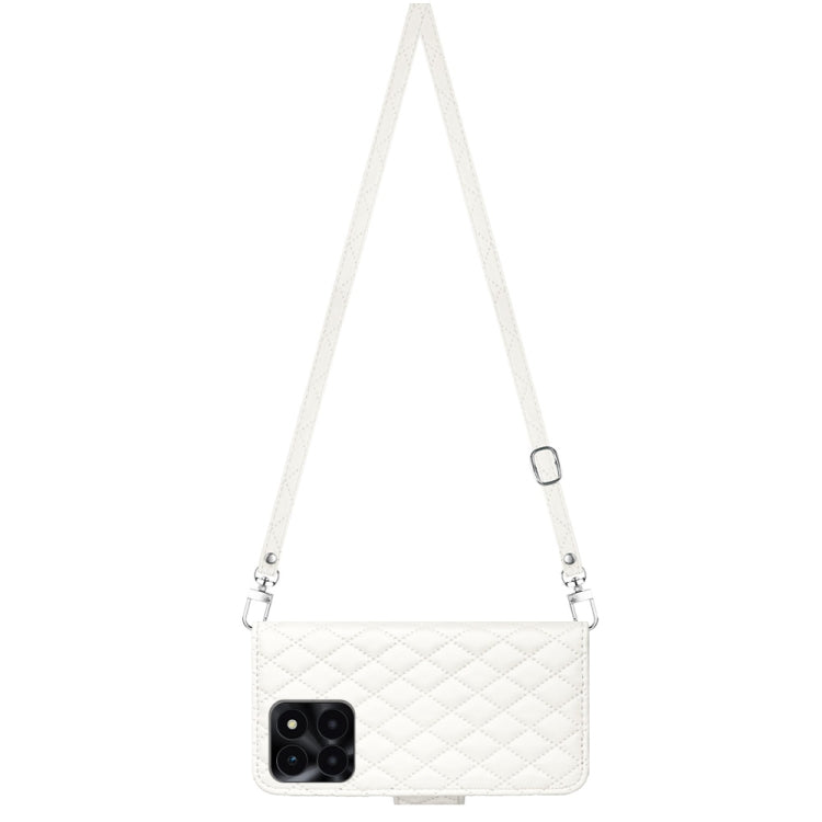 For Honor X6a Rhombic Texture Flip Leather Phone Case with Long Lanyard(White)