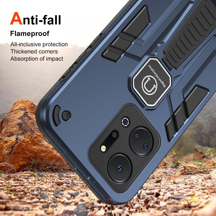 For Honor X7a Shockproof Holder Phone Case(Blue)