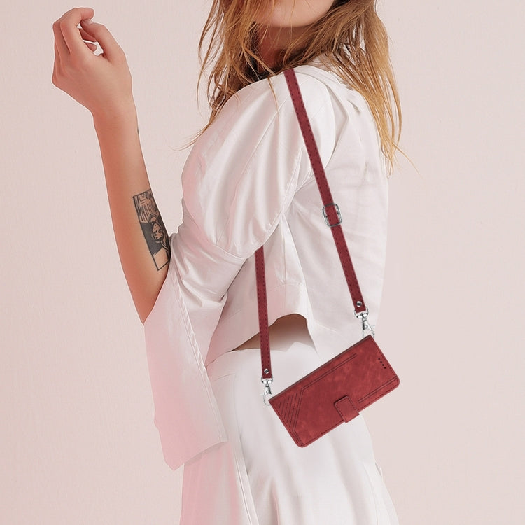 For Honor X7b Skin Feel Stripe Pattern Leather Phone Case with Lanyard(Red)