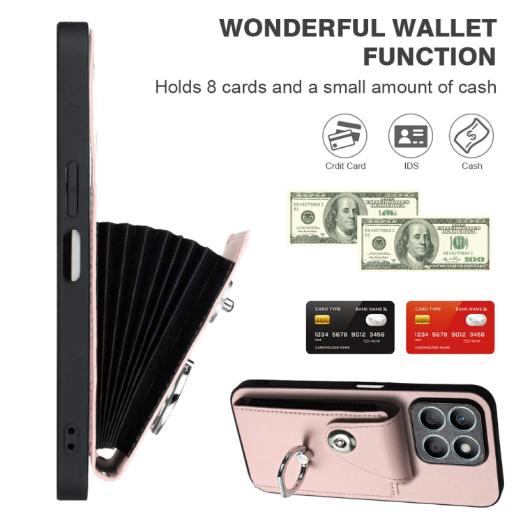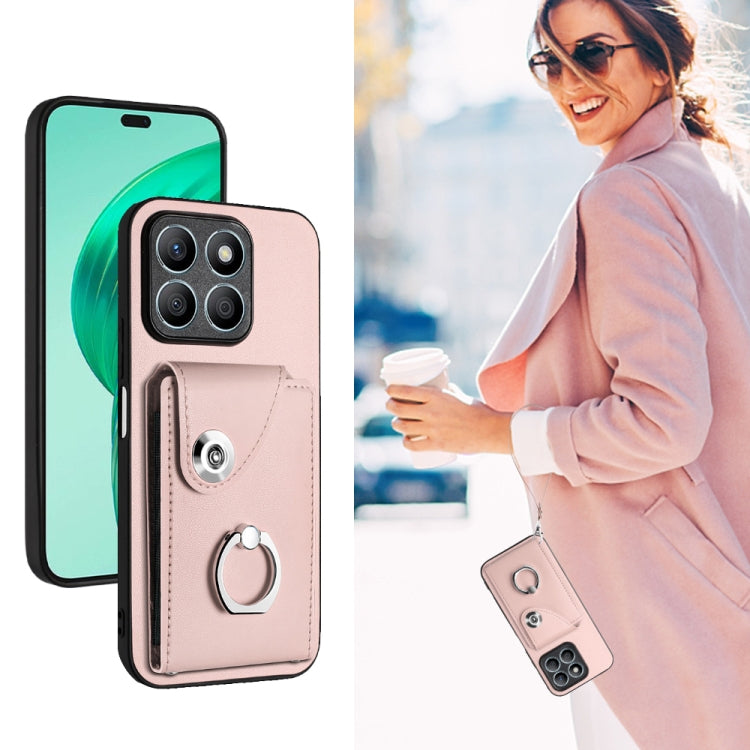 For Honor X8b 4G Global Organ Card Bag Ring Holder PU Phone Case with Lanyard(Pink)