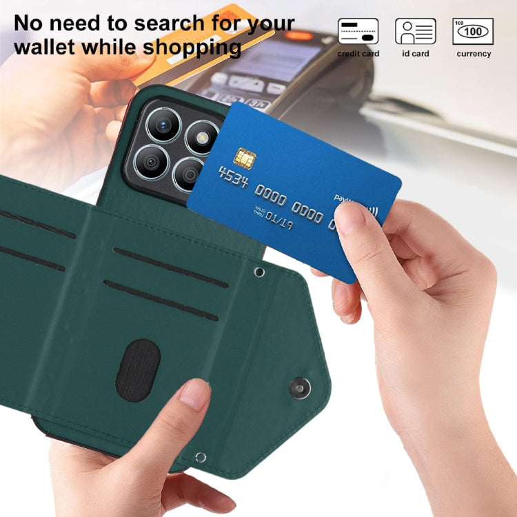 For Honor X8b 4G Global Rhombic Texture Card Bag RFID Phone Case with Long Lanyard(Green)