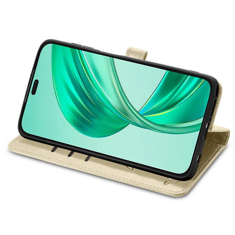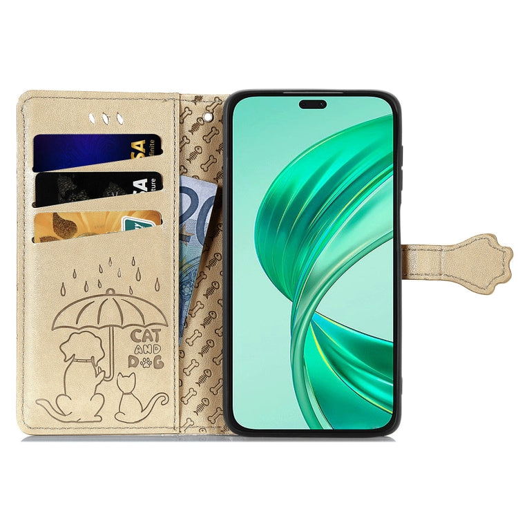 For Honor X8b Cat and Dog Embossed Leather Phone Case(Gold)