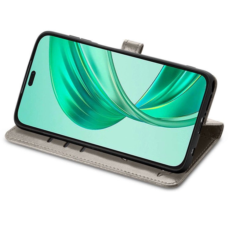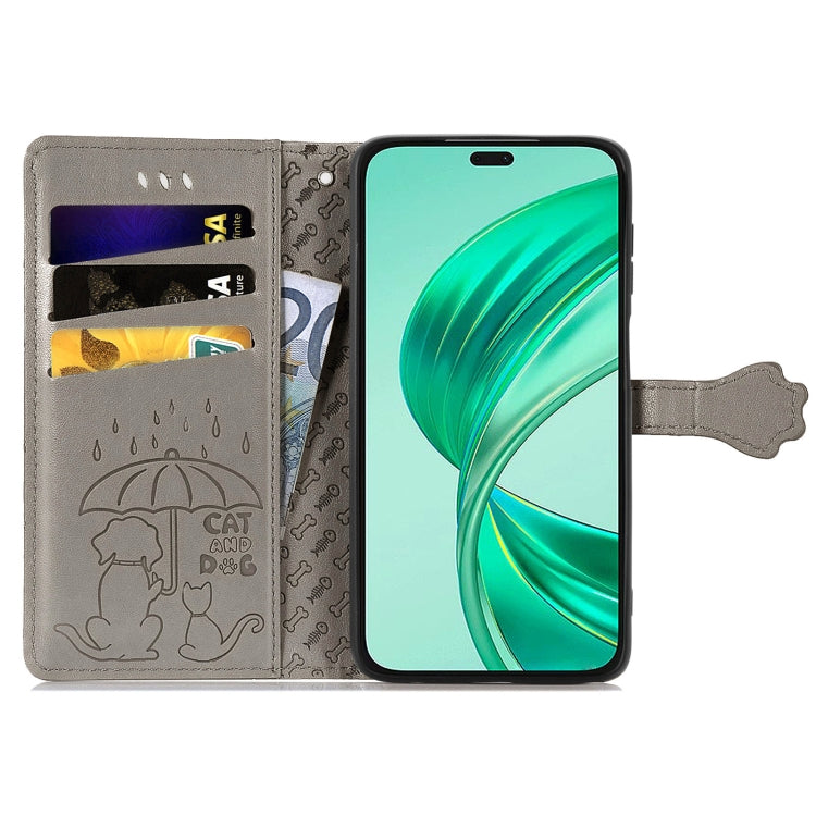 For Honor X8b Cat and Dog Embossed Leather Phone Case(Grey)