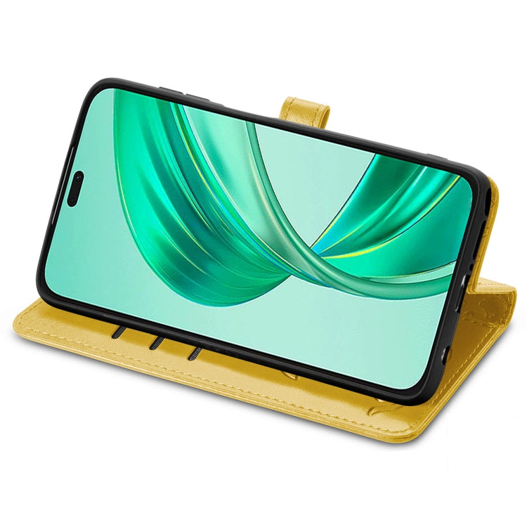 For Honor X8b Cat and Dog Embossed Leather Phone Case(Yellow)