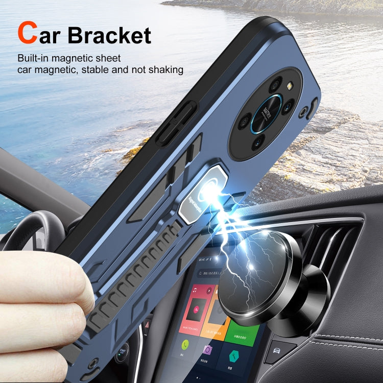 For Honor X9 Shockproof Holder Phone Case(Blue)