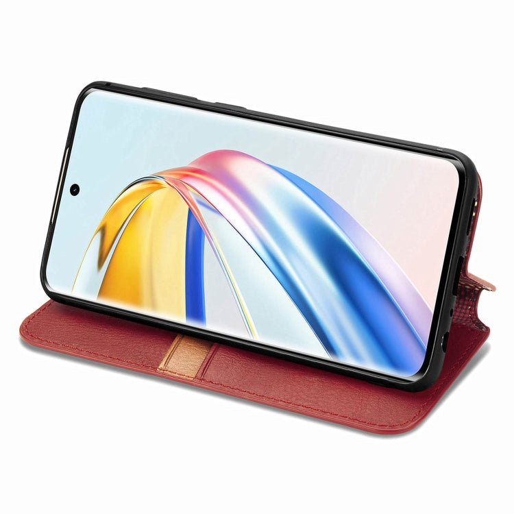 For Honor X9b 4G Cubic Grid Pressed Magnetic Leather Phone Case(Red)