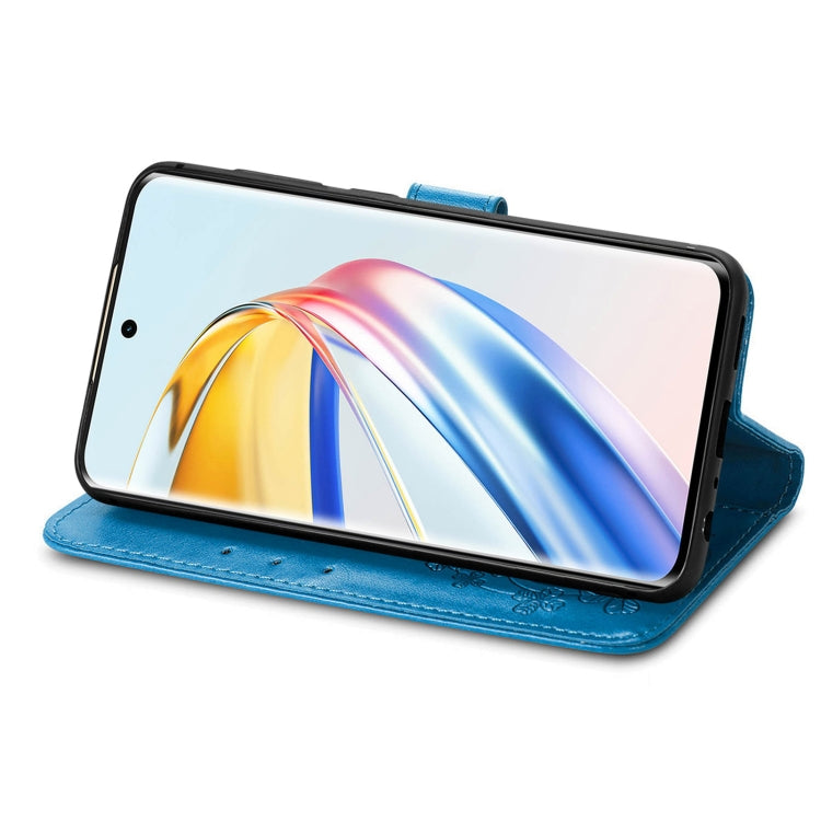 For Honor X9b Four-leaf Clasp Embossed Leather Phone Case(Blue)