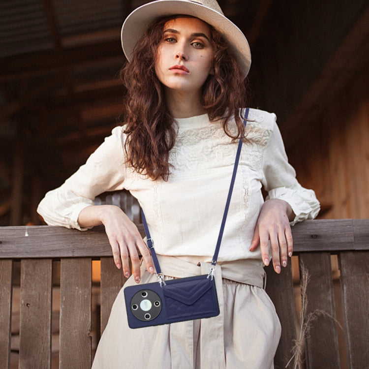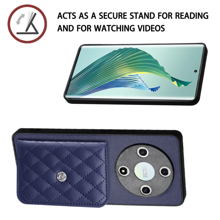 For Honor X9b / Magic6 Lite Rhombic Texture Card Bag RFID Phone Case with Long Lanyard(Dark Purple)