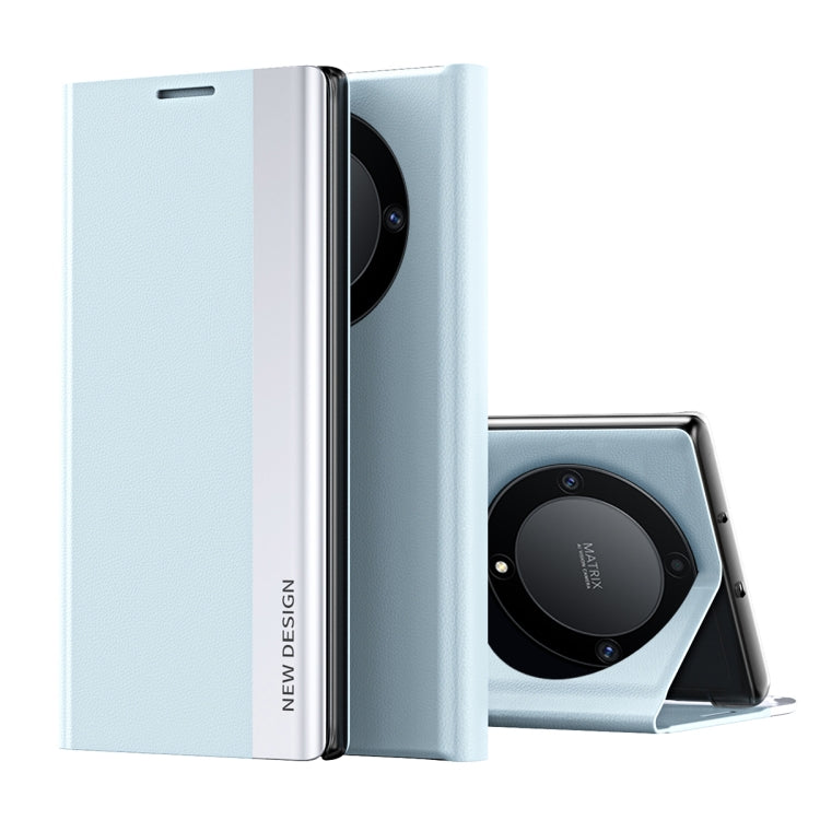 For Honor X9b Side Electroplated Adsorption Leather Phone Case(Light Blue)