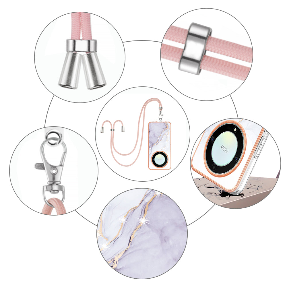 YB IMD Series-9 For Honor X40 5G / X9a 5G / Magic5 Lite 5G IMD Marble Pattern Phone Case Electroplating TPU Cover with Lanyard - White 006