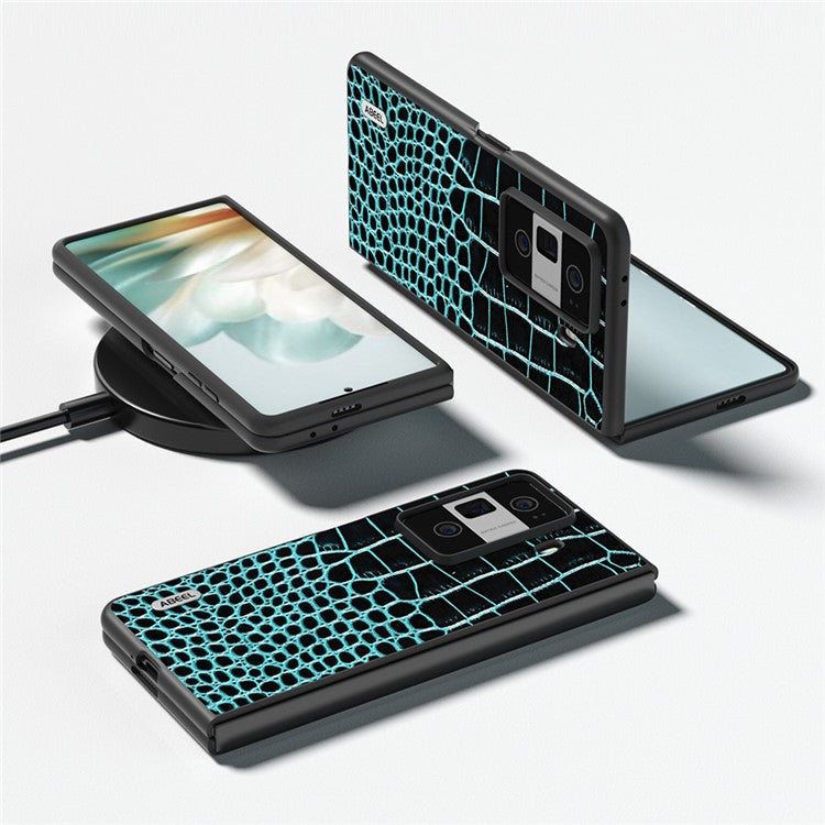 ABEEL For Honor Magic Vs3 5G Case Genuine Cow Leather Back Phone Cover Crocodile Texture - Midnight Green
